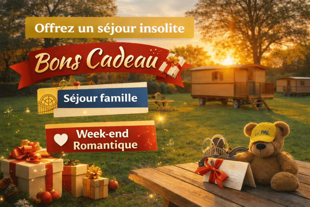 Nos Bons Cadeaux sont l’idée parfaite pour s’évader en roulotte ! Un cadeau qui ne prend pas la poussière, mais qui crée de vrais souvenirs ! Valable 1 ans après la date d’achat, uniquement sur la période d’ouverture (Avril à Septembre).